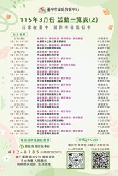 臺中市家庭教育中心【115年3月份活動一覽表】春日幸福登場