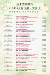 臺中市家庭教育中心【115年5月份活動一覽表】五月溫馨上架